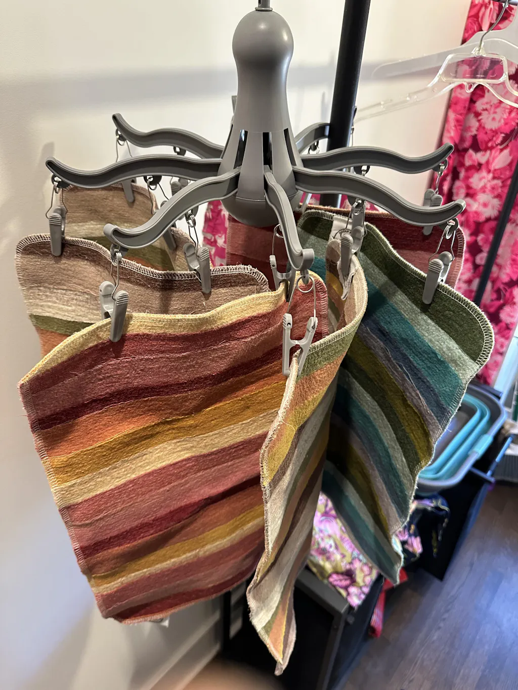 Each Scrap Felt item is unique, versatile and totally upcycled. This truly multi-purpose Placemat / Drying Mat absorbs liquid and creates a protective barrier for surfaces.